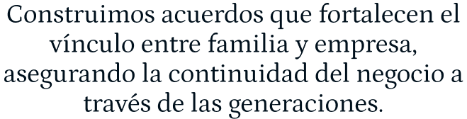 Acompañamos a las Familias Empresarias en el proceso de elaboración del Protocolo de Familia para potenciar la profesionalización y el desarrollo de la empresa, cuidar la convivencia intergeneracional y definir las políticas que regulen la relación entre la empresa y la familia.